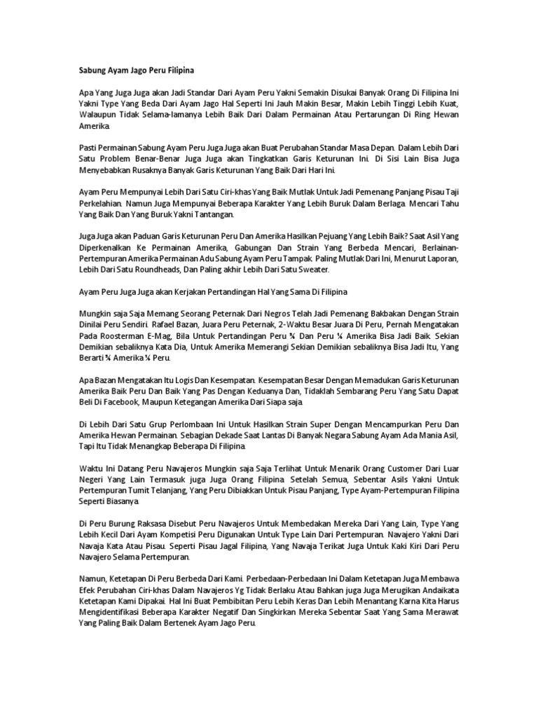 Rajanya ayam segala ayam !! sabung ayam peru. Dalam kancah sabung ayam indonesia, ayam peru / ayam peruvian dikenal sebagai ayam aduan taji pisau yang cukup berbahaya.