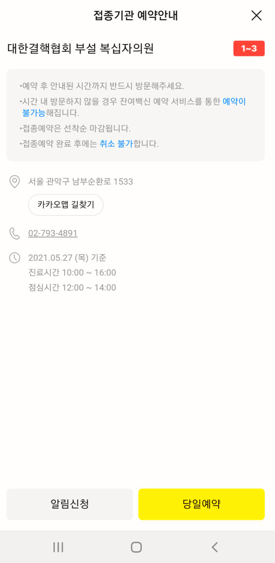 카카오톡 잔여백신 예약 방법 알림신청 from img1.daumcdn.net 네이버 잔여백신 조회 및 접종 예약 과정 코로나19 예방접종대응추진단 제공 팜뉴스 =신용섭 기자 네이버와 카카오 앱으로 신종 코로나바이러스 감염증 (코로나19) '잔여 백신'을 조회하고, 당일 예약으로 접종도 받을 수 있게 된다. 개봉한 후 6시간 내에 백신을 소진하지 못하면 남은 양은 전량 폐기하게 됩니다. 우리가 아스트라제네카 백신을 주로 위탁 의료 기관, 의원급에서 사용하게 되는데요. See full list on lifefruity.tistory.com 노쇼 백신 잔여 백신 분량이 나오는 것 놓치지 않는 아주 좋은 시스템이 개발된 것 같으니 잘 활용 하셔서 가급적 빨리 백신을 맞으시고 홀가분하게 생활하셨으면 좋겠습니다. · 잔여백신 당일예약 시스템은 27일 오후 1시부터 앱을 통해 개통됩니다. 맞다면 지금 신청하기 버튼을 누르세요. See full list on lifefruity.tistory.com